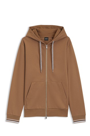 A sporty jacket, cut to a regular fit, in temperature-regulating bonded jersey by BOSS. Blended with cotton and stretch for a breathable feel with crease resistance, this zip-up jacket features side stripe along the sleeves. BOSS x ASTON MARTIN showcases impeccable craftsmanship and sophistication.