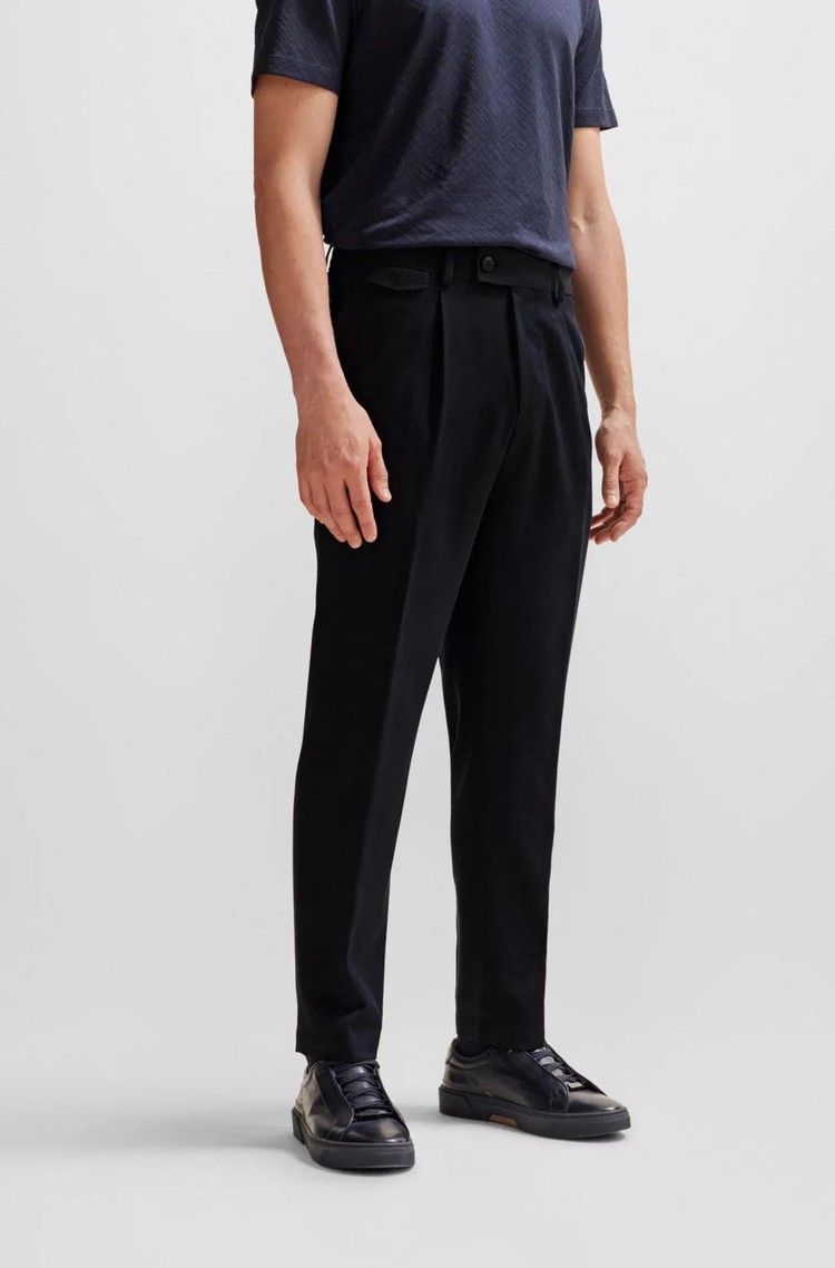 Impeccably crafted trousers with a regular rise and front pleats by BOSS Menswear, designed in luxurious silk with a solid weave for elegant simplicity.