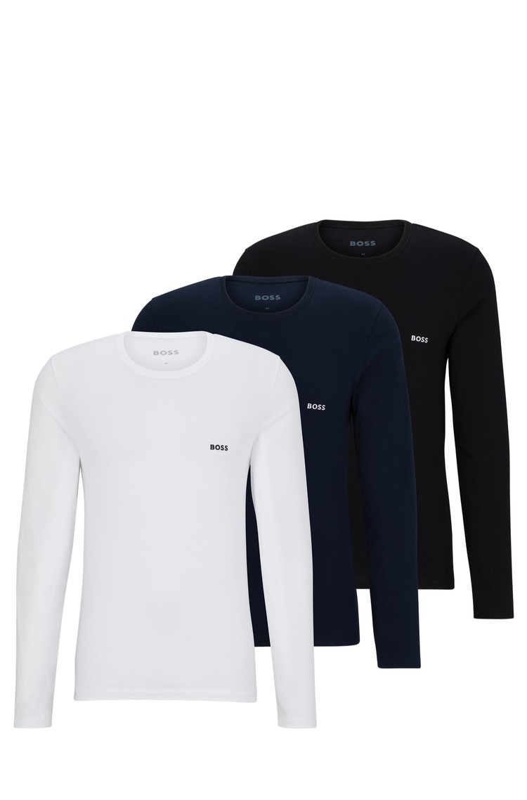 Three long-sleeved underwear T-shirts cut to a regular fit in pure cotton with subtle branding by BOSS.