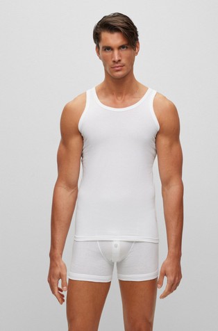Two timeless slim-fitting vests by BOSS, crafted in stretch-cotton jersey and printed with subtle branding at the left hem.