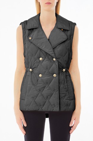 Quilted nylon coat with removable sleeves