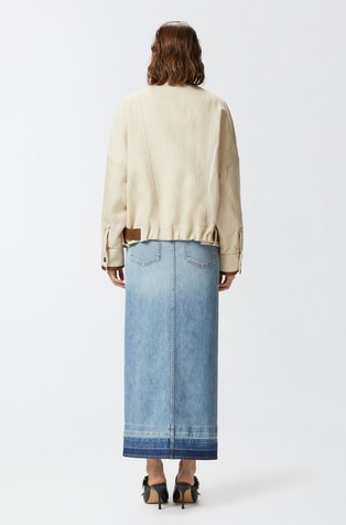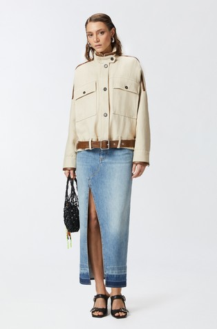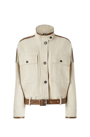 Relaxed fit jacket in cotton-linen with leather-effect edging