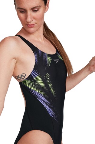 Glide through your training wearing this sleek black Recordbreaker swimsuit, featuring an intricate side placed graphic inspired by energy and movement. Ideal for drills and sets, the Recordbreaker design includes an open back and straps that sit between the shoulder blades for improved freedom of movement. Designed to be durable and better for the environment, it’s made from our new ECO Endurance+ fabric, which is 100% chlorine resistant, quick-drying and made using 50% recycled materials.
