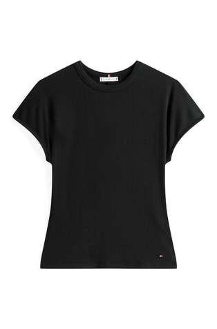 This simple slim-fitting T-shirt is crafted from stretch viscose with ribbed texture and features subtle logo detailing.