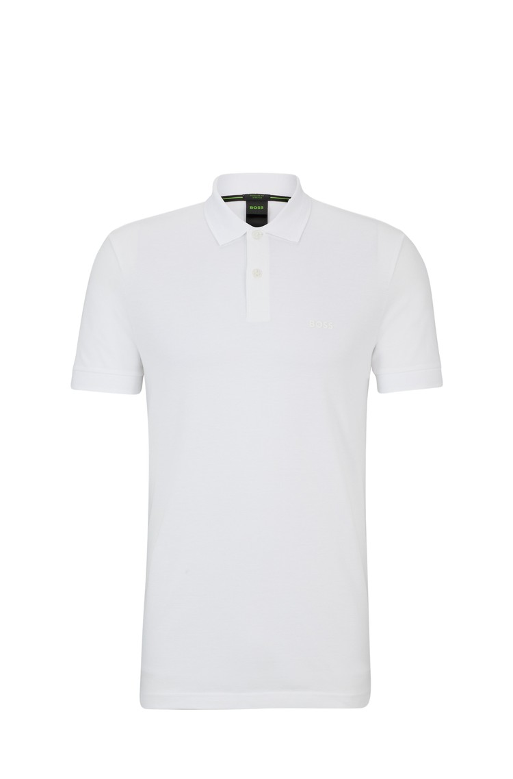 Ravno krojena polo majica iz raztegljive bombažne piké tkanine je okrašena s prefinjenim BOSS logotipom ter svetlečo črto na ovratniku in patentu rokavov.
