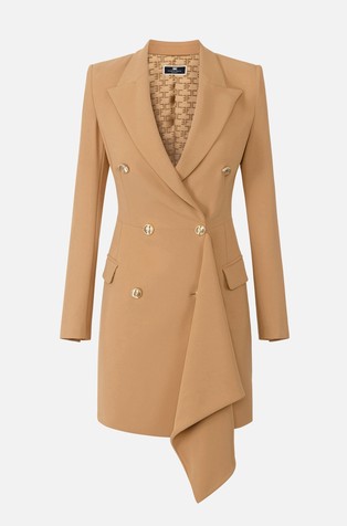 "image_1" : 'ELISABETTA FRANCHI Obleka z dvorednim zapenjanjem in naborkom Bež - Bronze 1'