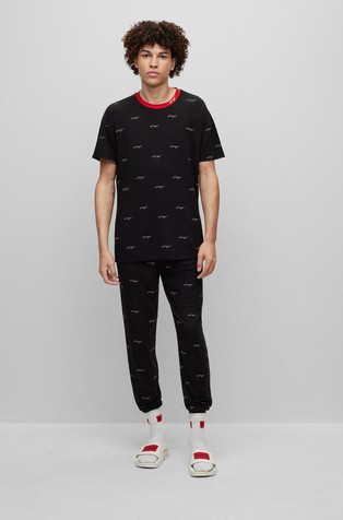 Spodnji del pižame s srednje visokim pasom po celotni površini krasi izstopajoč vzorec ročno napisanih HUGO logotipov.