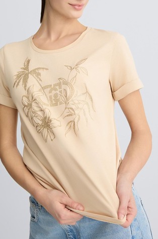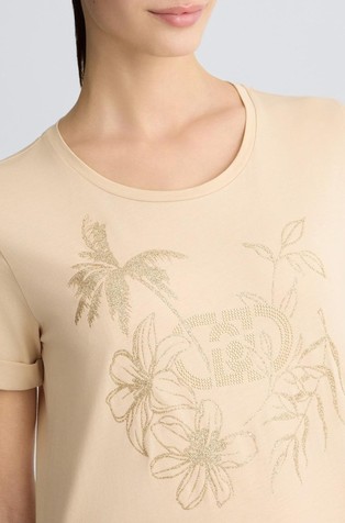 "ItemImageDesc" : "LIU JO Bombažna majica z logotipom in okrasnimi kamenčki Bež - Beige / Flowers ",