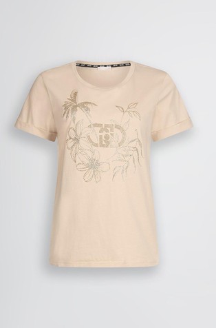 "image_1" : 'LIU JO Bombažna majica z logotipom in okrasnimi kamenčki Bež - Beige / Flowers 1'