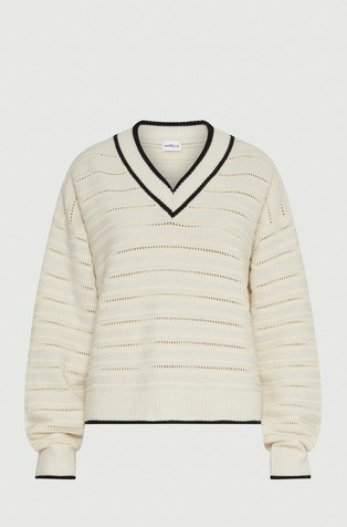 • Ovratnik, rokavi in spodnji rob zaključeni z rebrasto pletenino.