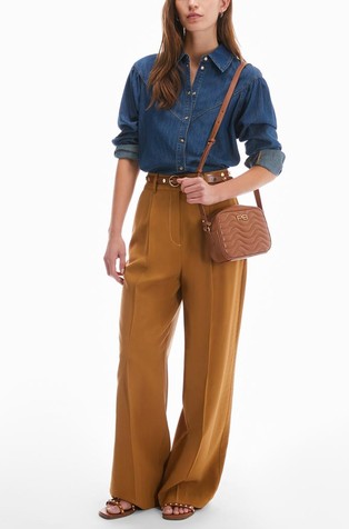 Srajca z ravnim sproščenim krojem iz lahkega denima, zasnovana z V-kontrastnim šivom spredaj in z nabranimi rokavi s spuščenimi rameni. Nov pogled na večno klasiko.