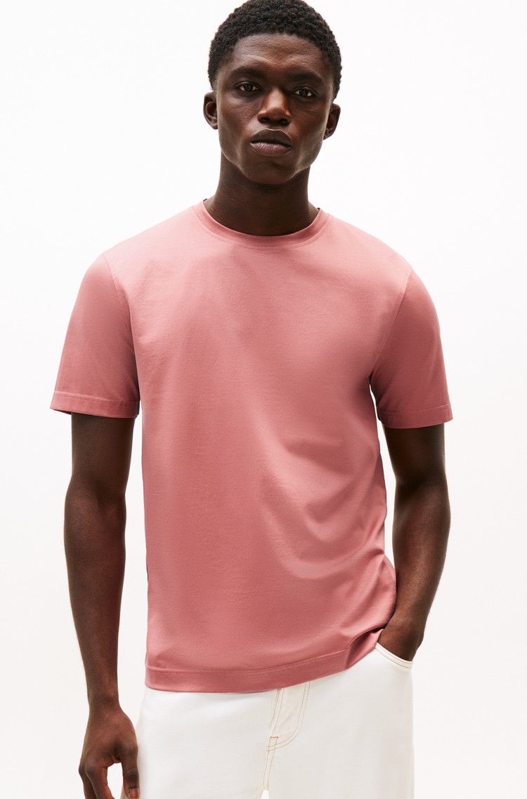 Preprosta, a brezčasna majica s kratkimi rokavi, izdelana iz gladkega merceriziranega bombaža, ki nudi vrhunski občutek na koži.