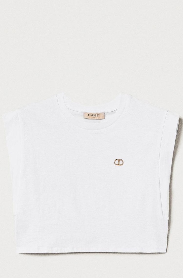 "ItemImageDesc" : "TWINSET Cropped majica z Oval T logotipom Bela - White ",